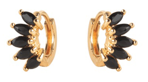 Orecchini placcati oro, dotate di pietre nere sul cerchio.