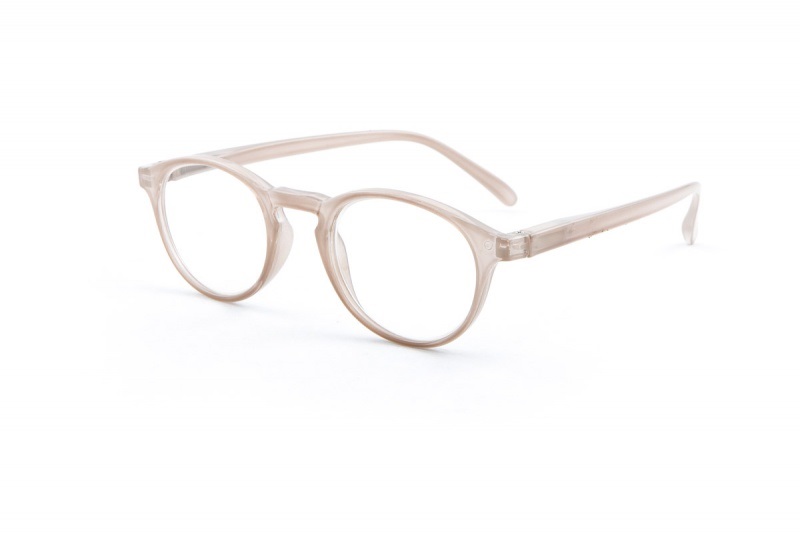 Occhiali da vista con lenti tonde e aste lineari.