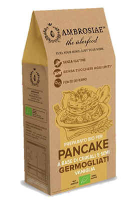 Preparato bio per pancake a base di cereali e semi germogliati, interamente processato sotto i 42°C per preservare al massimo tutte le proprietà nutritive.